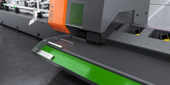 Toate setările din sistem în funcție de dimensiunile secțiunii transversale ale țevilor și profilelor sunt realizate automat de CNC atunci când sunt introduse informații despre material. În mod standard, piesele finite pot fi descărcate cu o lungime maximă de 4000 mm. Opțional poate fi extins la 6000mm.